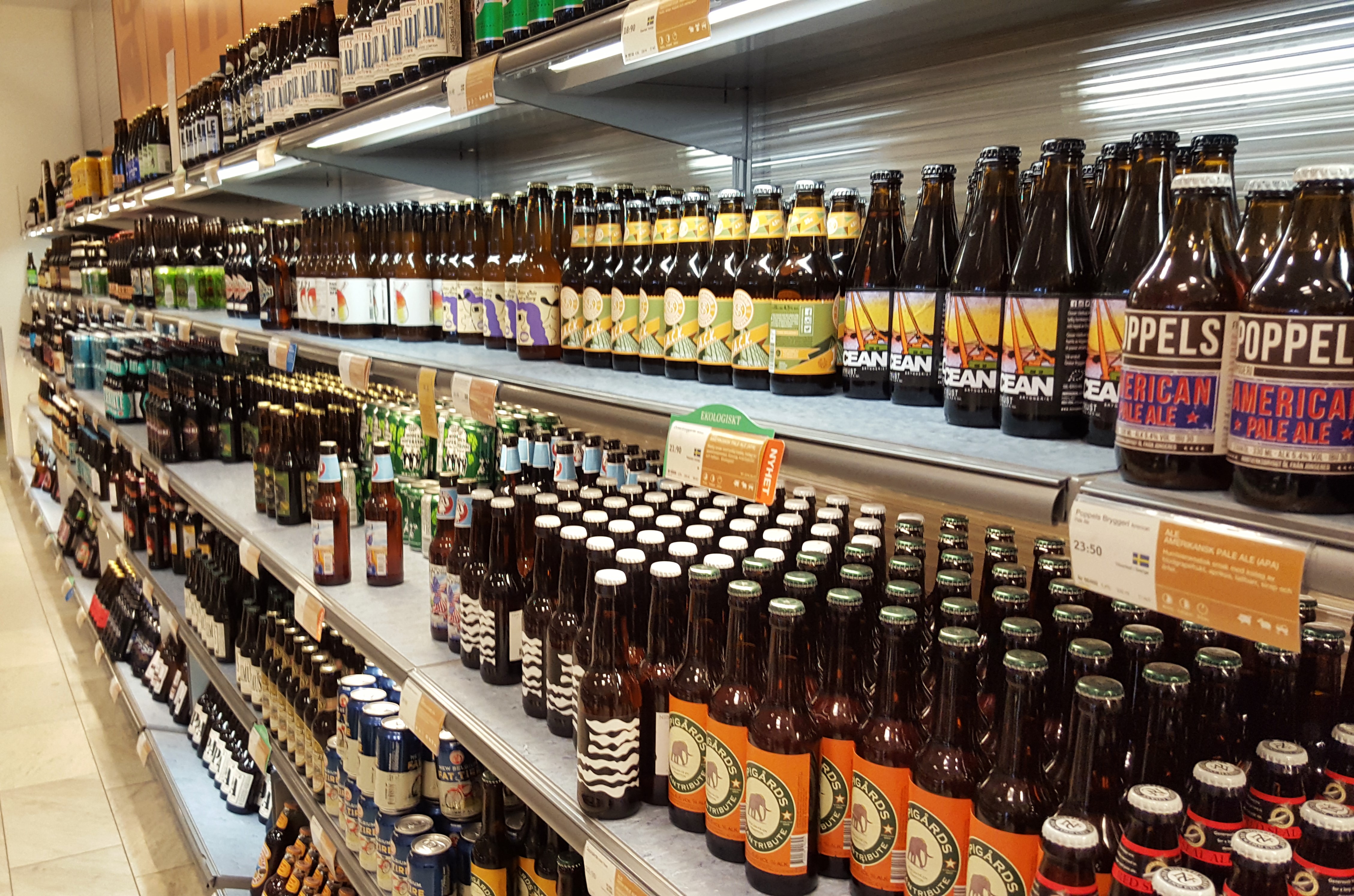 In schwedischen Supermärkten kann man nur Getränke mit bis zu 4% Alkohol kaufen. Wein, Cider oder noch härteren Stoff gibt es nur im Systembolaget, der für schwedische Verhältnisse sehr kurze Öffnungszeiten hat. Ein Besuch lohnt sich aber definitiv.