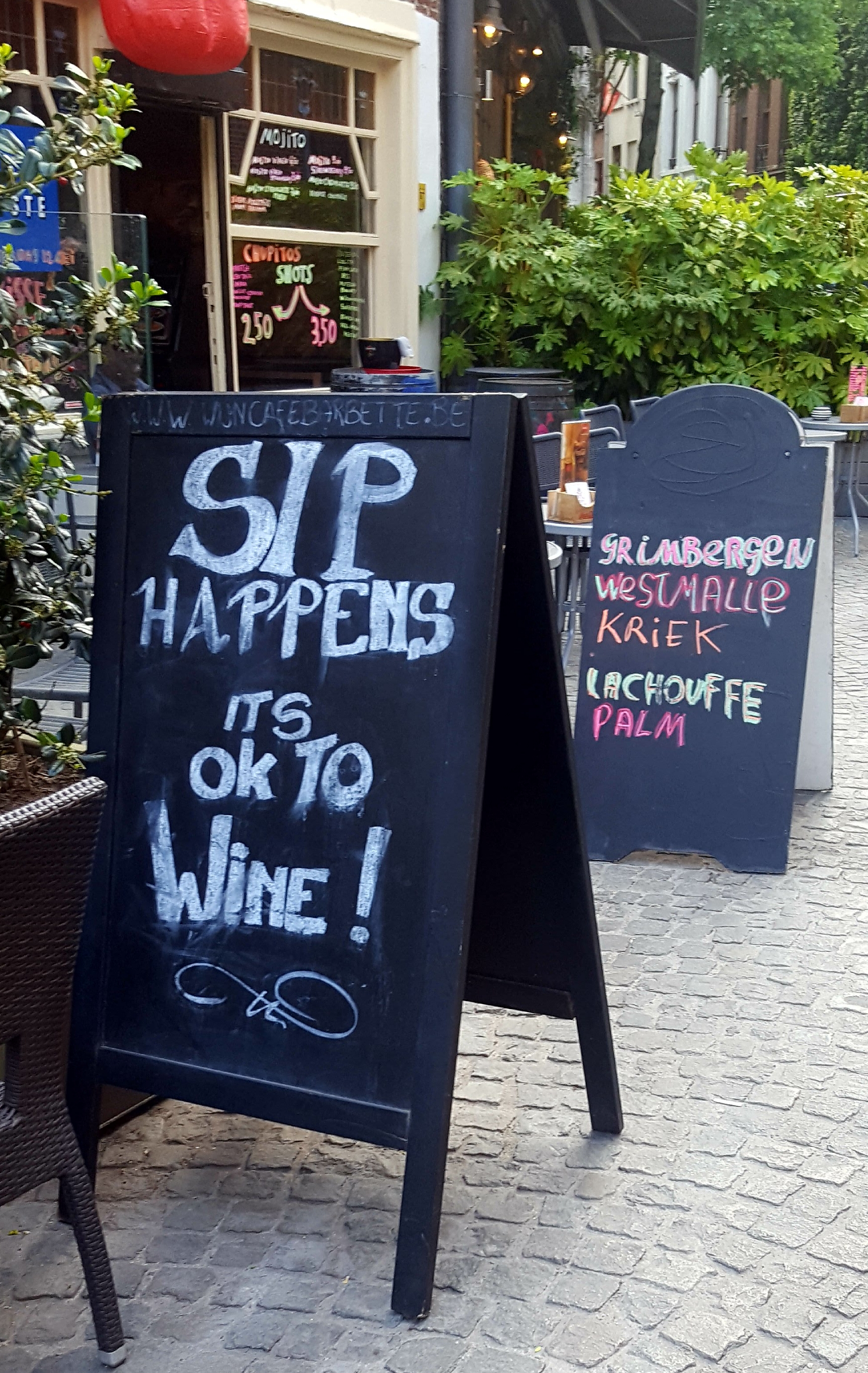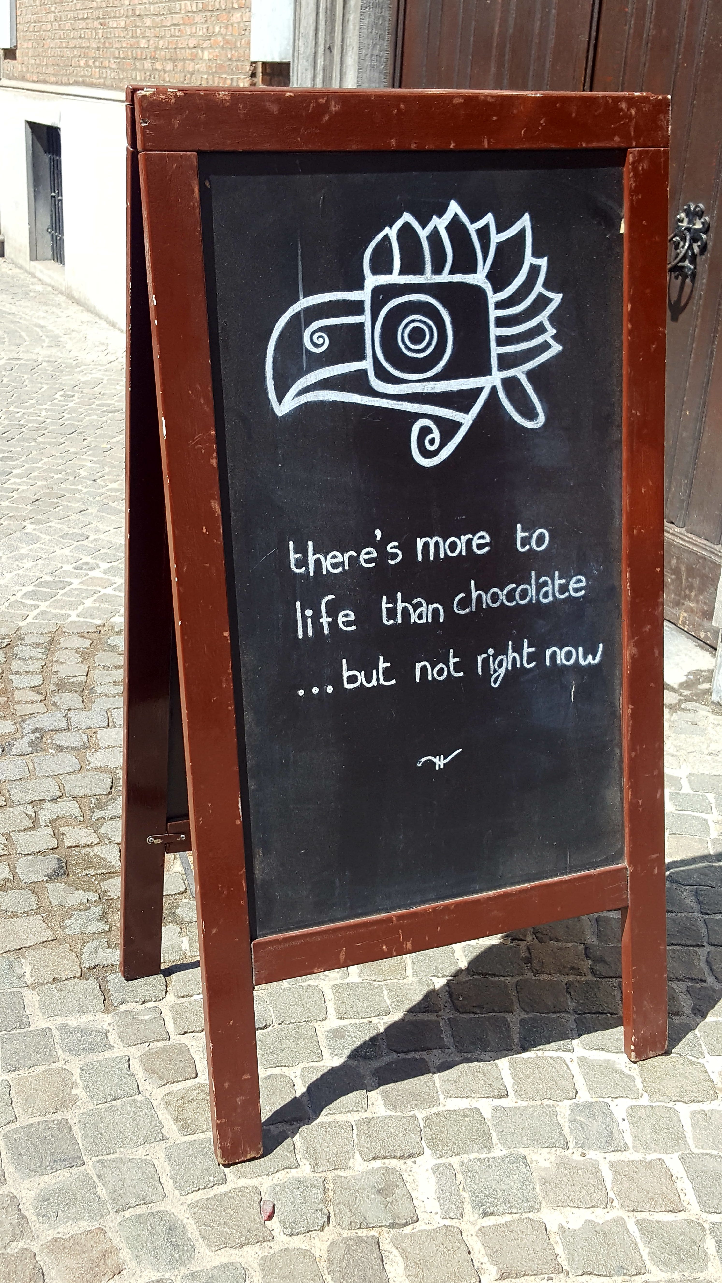 Alle Ernährungs-Weisheiten sollte man bei einem Belgien-Urlaub gepflegt über Bord werfen, sonst macht es keinen Spaß. Ich kenne kein anderes Land, das mit so vielen köstlichen Kalorien-Bomben besticht. Noch dazu wurde uns alle zehn Meter von einer munteren Aufschrift signalisiert, dass es völlig ok sei, dem Weg ins Schlaraffenland traumtänzerisch nachzufolgen.